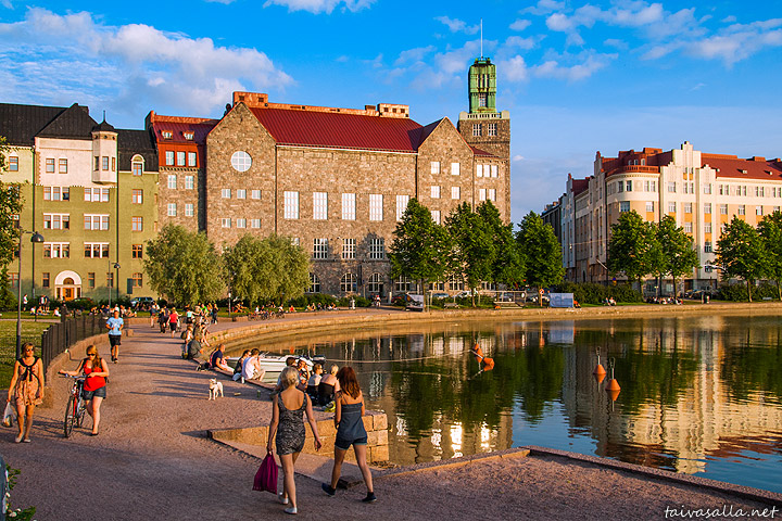 Helsinki: A warm summer evening on the shore of Eläintarhanlahti inlet in the district of Kallio.