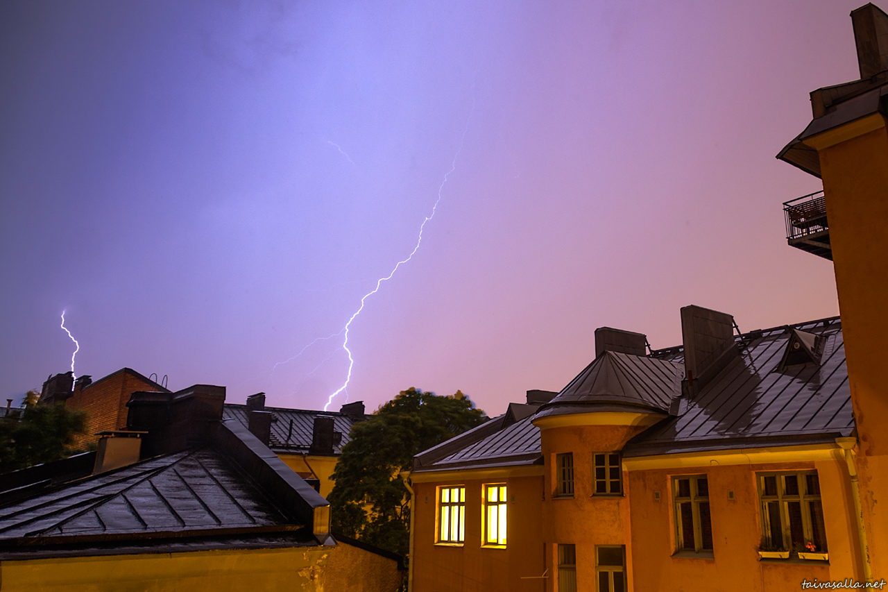 Helsinki: Lightnings strike above the district of Katajanokka during a nightly thunderstorm, which arrived from the Gulf of Finland.