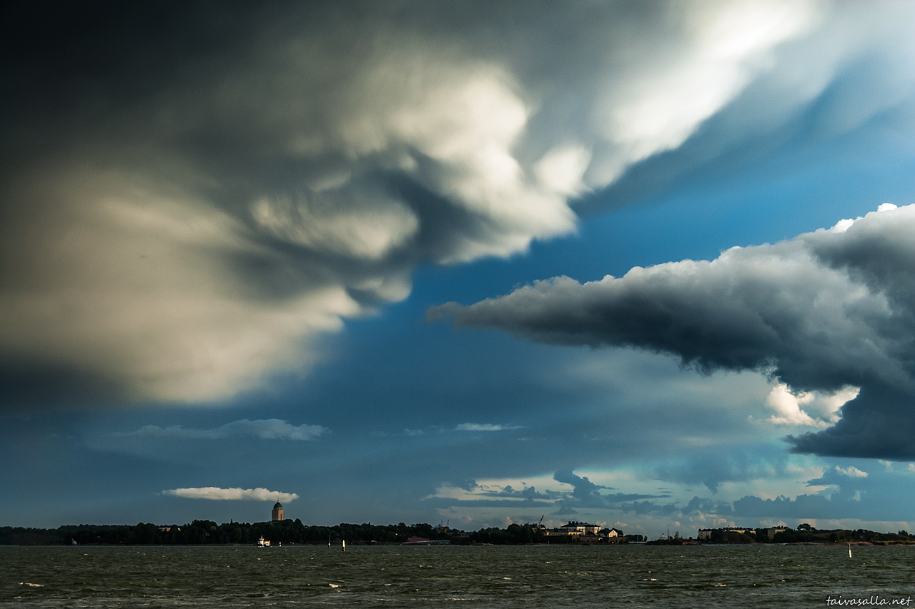 Helsinki: Clouds above the Suomenlinna islands seen from the shore of Katajanokka district.