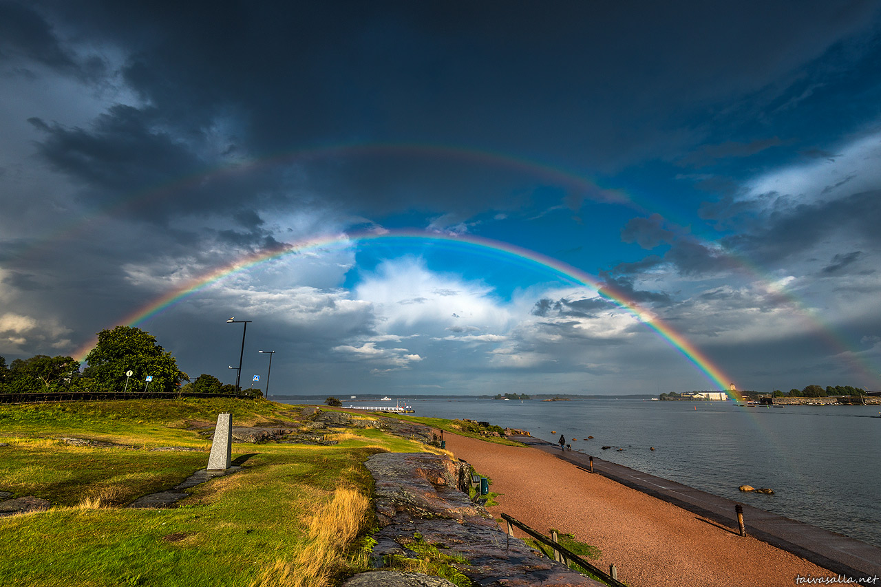 Helsinki: A rainbow and a secondary arc above it seen from the shore of Kaivopuisto district.