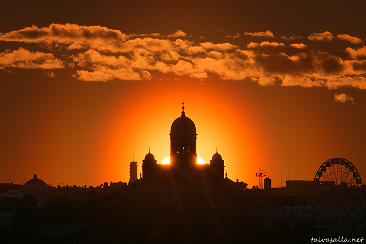 Helsinki: The sun sets behind Helsinki Cathedral in a photo taken from the Suomenlinna islands.